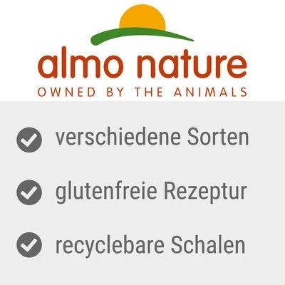 La comida húmeda para perros Almo Nature Daily está disponible en diferentes variedades deliciosas, cada una de ellas está elaborada con ingredientes animales como ternera, buey, pavo o pollo. Esta deliciosa comida húmeda proporciona a tu perro una gama de vitaminas y oligoelementos como la vitamina E, la vitamina B1 y el manganeso. La comida húmeda de Almo Nature Daily no contiene gluten, por lo que también es adecuada para perros con intolerancia al gluten. También se han evitado sistemáticamente los colorantes y conservantes químicos. Además, viene envasa en una práctica tarrina de aluminio reciclable.