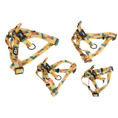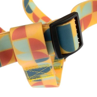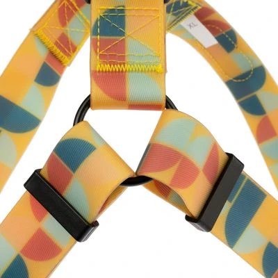 Eel arnés TIAKI Easy Care tiene fantástico diseño con formas geométricas de colores. Su material robusto con recubrimiento impermeable de PVC sirve para evitar los olores desagradables. Cuenta con un cierre a presión para que sea fácil de poner y quitar.