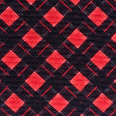- Color: negro y rojo, con diseño a cuadros