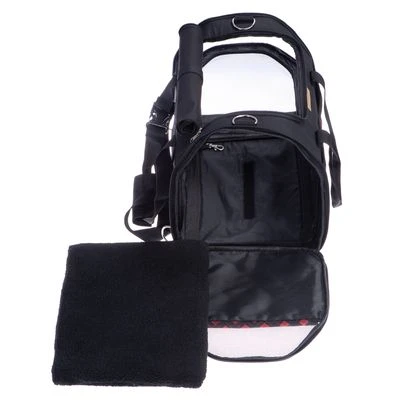 Bolso con base estable y cojín extraíble para perros, gatos y roedores de hasta 7 kg. Impermeable, con correa de sujeción, 3 bolsillos y cómodas asas. Se puede fijar al cinturón de seguridad.