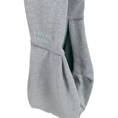 Bolso para transportar a cachorros y perros pequeños de hasta 5 kg cerca del cuerpo. Ofrece sensación de seguridad. Material elástico y con correa corta. Color: gris claro/menta