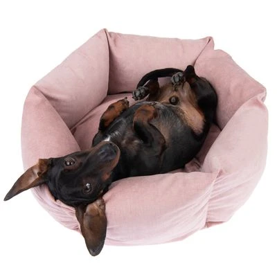 La cama Manila tiene el borde grueso y viene con un cojín reversible acolchado con un lado de felpa sirve como superficie de descanso. Está fabricada con una bonita tela de tapicería y destaca por su sencillo mantenimiento. La funda puede quitarse fácilmente mediante una cremallera para poder limpiarla. La base antideslizante asegura un apoyo estable incluso en suelos resbaladizos.