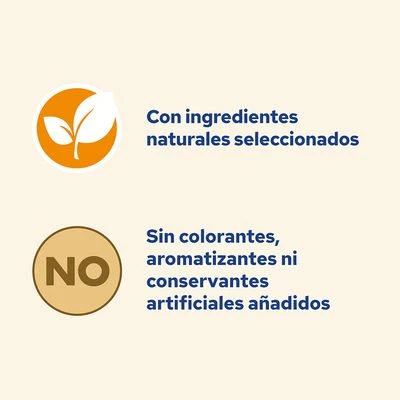 - Sin colorantes, aromatizantes ni conservantes artificiales