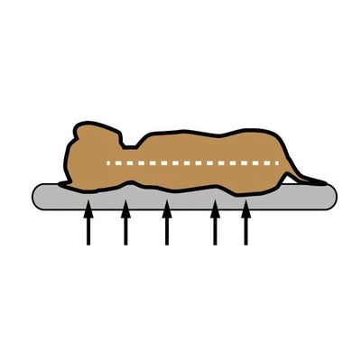 Cojín relleno de copos de espuma de gel especial, con efecto ortopédico. Se adapta muy bien al cuerpo y a la columna vertebral y favorece las articulaciones y los músculos. Además, aumenta el bienestar del perro, ya que dispone de una funda que retiene el calor, lo que también ayuda a evitar la pérdida de la elasticidad y la movilidad. Es perfecto para perros mayores o con problemas del aparato locomotor.
