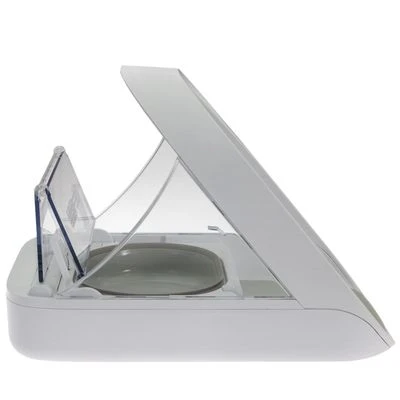 El comedero automático SureFeed Microchip tiene un control de acceso que funciona con microchip, el comedero escaneará el microchip de tu mascota y lo reconocerá. La parte superior del comedero está provisto de un cierre hermético que sella la bandeja de alimentación y mantiene la comida húmeda fresca más tiempo. La tapa del comedero se abre solo para los animales autorizados (hasta 32 animales). Cuando se acerca algún animal no autorizado la tapa no se abre, y si estuviera abierta se cerraría automáticamente. El comedero automático SureFeed microchip asegura también de que cada animal se coma solo su comida. La tapa del comedero se cierra de forma automática cuando el animal se aleja del sensor, el tiempo de retarde se puede graduar en tres niveles.