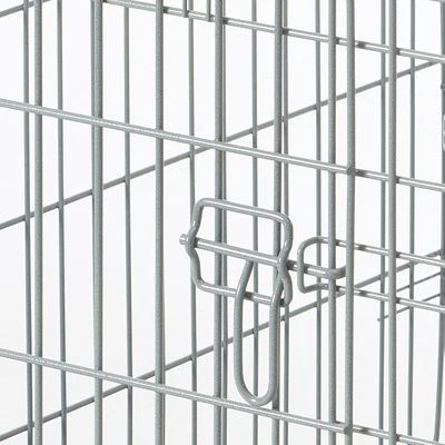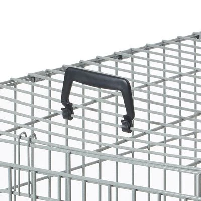 La jaula está equipada con 2 puertas, una en la zona frontal y otra en uno de los lados, para que tu perro pueda entrar y salir con comodidad. Gracias a las asas desmontables, el transporte es más sencillo; además es una jaula fácil de montar. En el modelo pequeño, con medidas 46 x 61 x 53 cm, las puertas se encuentran en la zona lateral y en la zona superior.