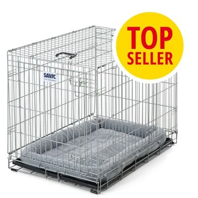 Jaula de transporte Savic para perros, con cojín incluido para que se sienta cómodo, además de seguro. Lacado con efecto martillado. Color: gris claro.