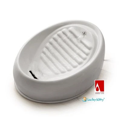Este bebedero está hecho de porcelana sanitaria de gran calidad y en color blanco. Es antideslizante y no se vuelca por lo que es perfecto para animales impetuosos. Tiene una forma compacta y no ocupa mucho espacio. Además tiene un diseño elegante, no tiene esquinas y no hace mucho ruido. Se puede colocar en cualquier lugar de la casa.