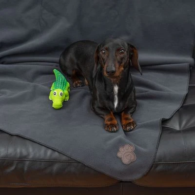 Manta práctica para perros, superficie suave de forro polar, protege el tapizado y otras superficies, aíslante e impermeable, puede lavarse en la lavadores. Color: gris/negro