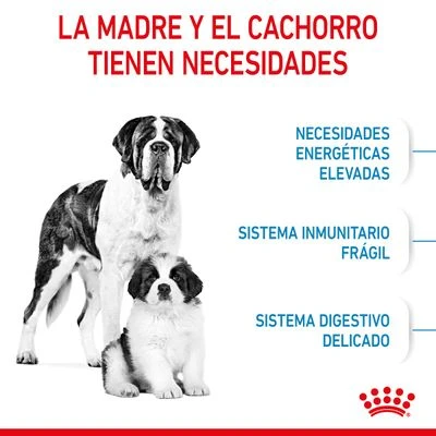 Las hembras durante la gestación y el periodo de lactancia necesitan una comida para perros que se adapte a sus necesidades especiales. Así mismo, los cachorros a partir de la 4ª semana de vida, necesitan de una alimentación complementaria que cuide de su crecimiento. Royal Canin Giant Starter, con el Starter Complex, está especialmente diseñado para cubrir las necesidades nutricionales de los cachorros de razas grandes en este periodo de su vida.