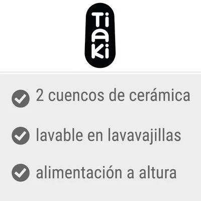 El comedero doble de cerámica de TIAKI es un comedero cómodo y accesible para mascotas. Consta de dos cuencos de cerámica, aptos para agua, comida húmeda y pienso, elevados para poder disfrutar cómodamente de la comida y bebida. Además, es antideslizante.Los cuencos de cerámica se puede limpiar fácilmente en el lavavajillas. El soporte puede limpiarse con un paño húmedo.