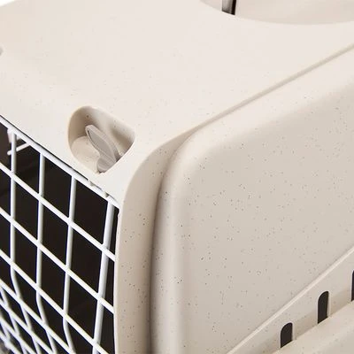 Tansportín de plástico 90 % reciclado para gatos y perros de menos de 5 kg. Con carcasa superior y puerta de rejilla desmontables.