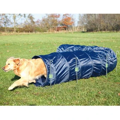 Este túnel Agility está fabricado en nailon resistente y es ideal para el entrenamiento de su perro. El montaje y plegado del túnel es rápido y sencillo. Se puede anclar al suelo gracias a los anclajes y anillos incluidos. Gracias a su 5 m de largo se puede adaptar a diferentes formas, por ejemplo en forma de U.