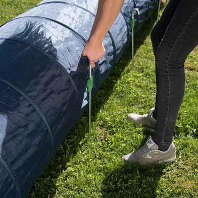Aviso: Acostumbre con precaución a su mascota al nuevo túnel. Al principio es recomendable acortar la longitud del túnel, simplemente doblando los metros sobrantes y adoptando una forma sencilla en linea recta.